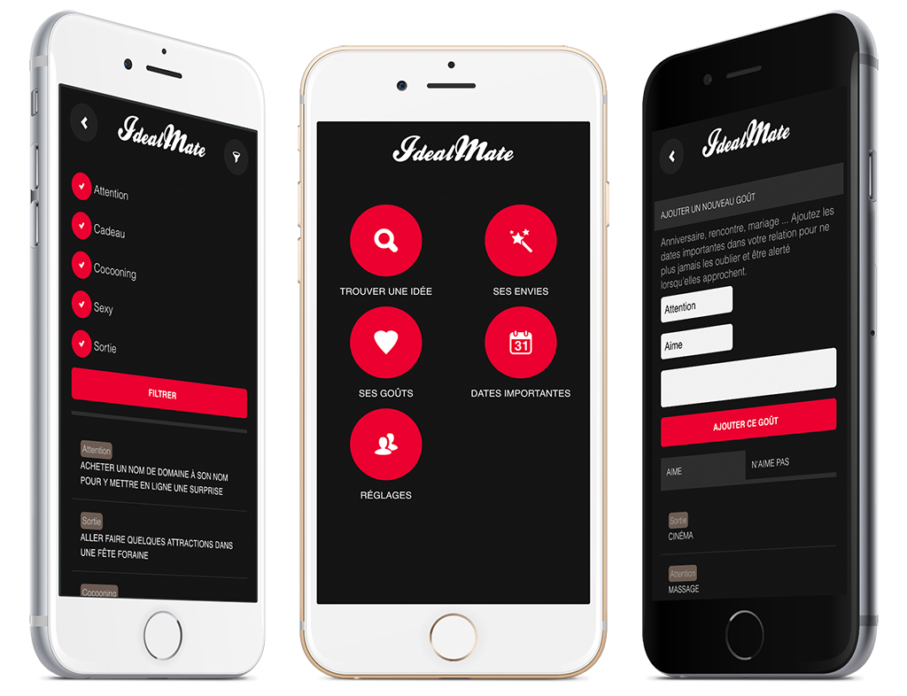 IdealMate est une application gratuite pour les personnes en couple qui souhaitent améliorer leur relation au quotidien par des attentions à avoir l'un envers l'autre, des idées à mettre en oeuvre, et des mémos pour ne rien oublier d'important !